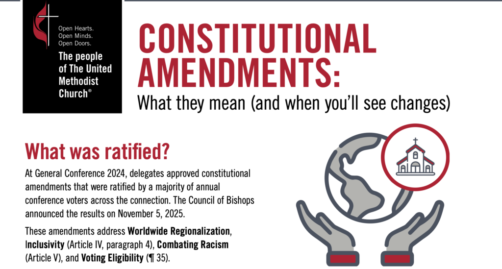 Download now: Handout: Constitutional Amendments: What they mean (UMCom) The Council of BishopsThe United Methodist ChurchFor Immediate ReleaseWednesday, November 5, 2025 WASHINGTON, D. C. The Council of Bishops of The […]