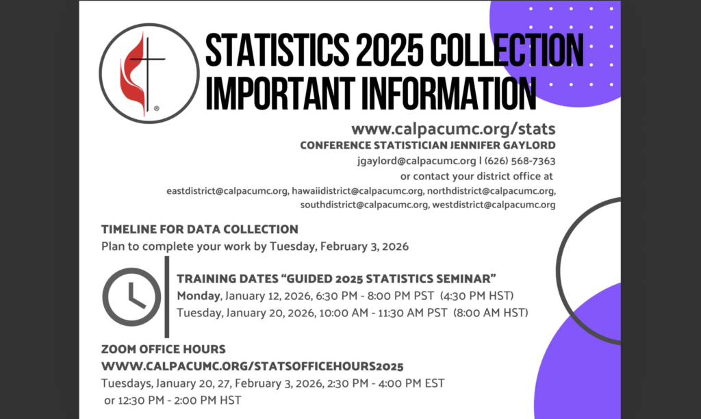 Dear Pastor, We are ready to start the 2025 Statistical Tables collection! The Tables are now open to you and your church for 2025. The Book of Discipline 2020|2024 ¶340 […]