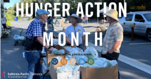The California-Pacific Conference’s vision is: Ending Spiritual and Physical Hunger. This represents our local church ministries and their efforts to end the five main causes of hunger: climate change, oppression, conflict, food insecurity, and poverty. Together, we can work towards creation care, peace, beloved community, abundance, and liberation for all.